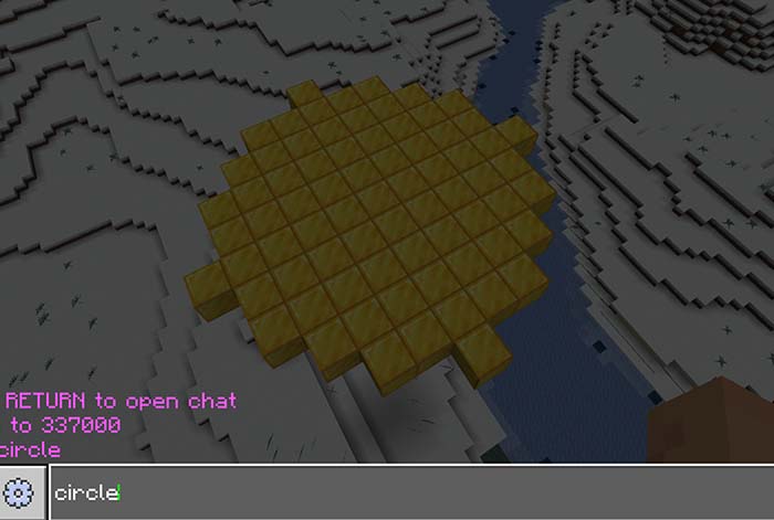 と入力し Enterキー を押すと、半径5ブロックの円が生成されます。