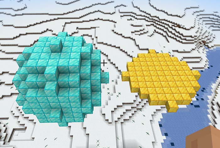 と入力し Enterキー を押すと、半径5ブロックの球が生成されます。